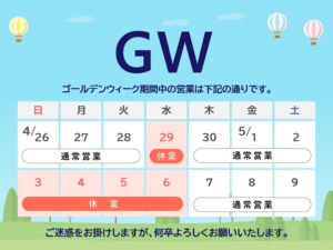 5月3日(日)~5月6日(水)お休みさせていただきます。
